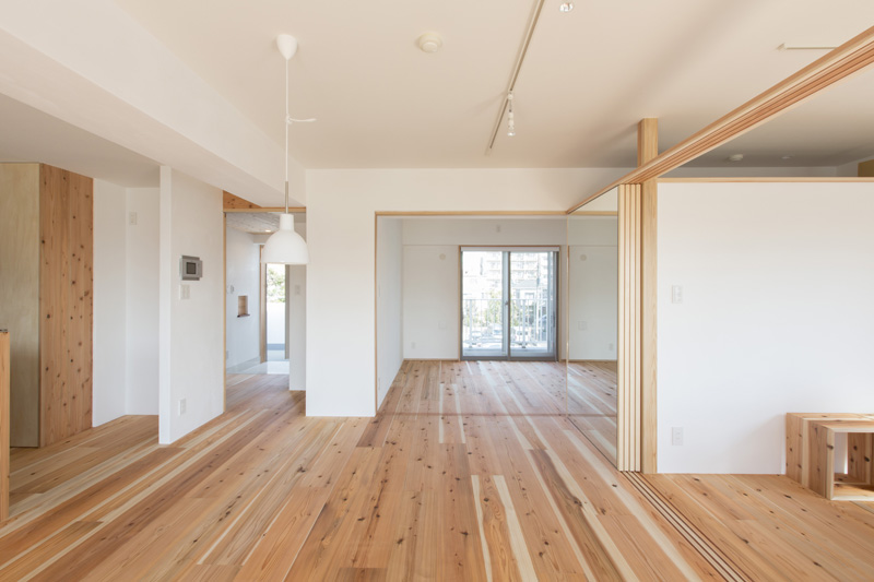 RC造の建物での暮らしの長かったT様ご家族にとって、自然素材に包まれた生活に憧れもあり、当初戸建でもご検討していましたが、住み慣れた場所で一からの土地探しはやはり容易いものではありませんでした。そこでもう一つ選択肢にあったマンションの好立地条件+木ノベーションを選ばれました。