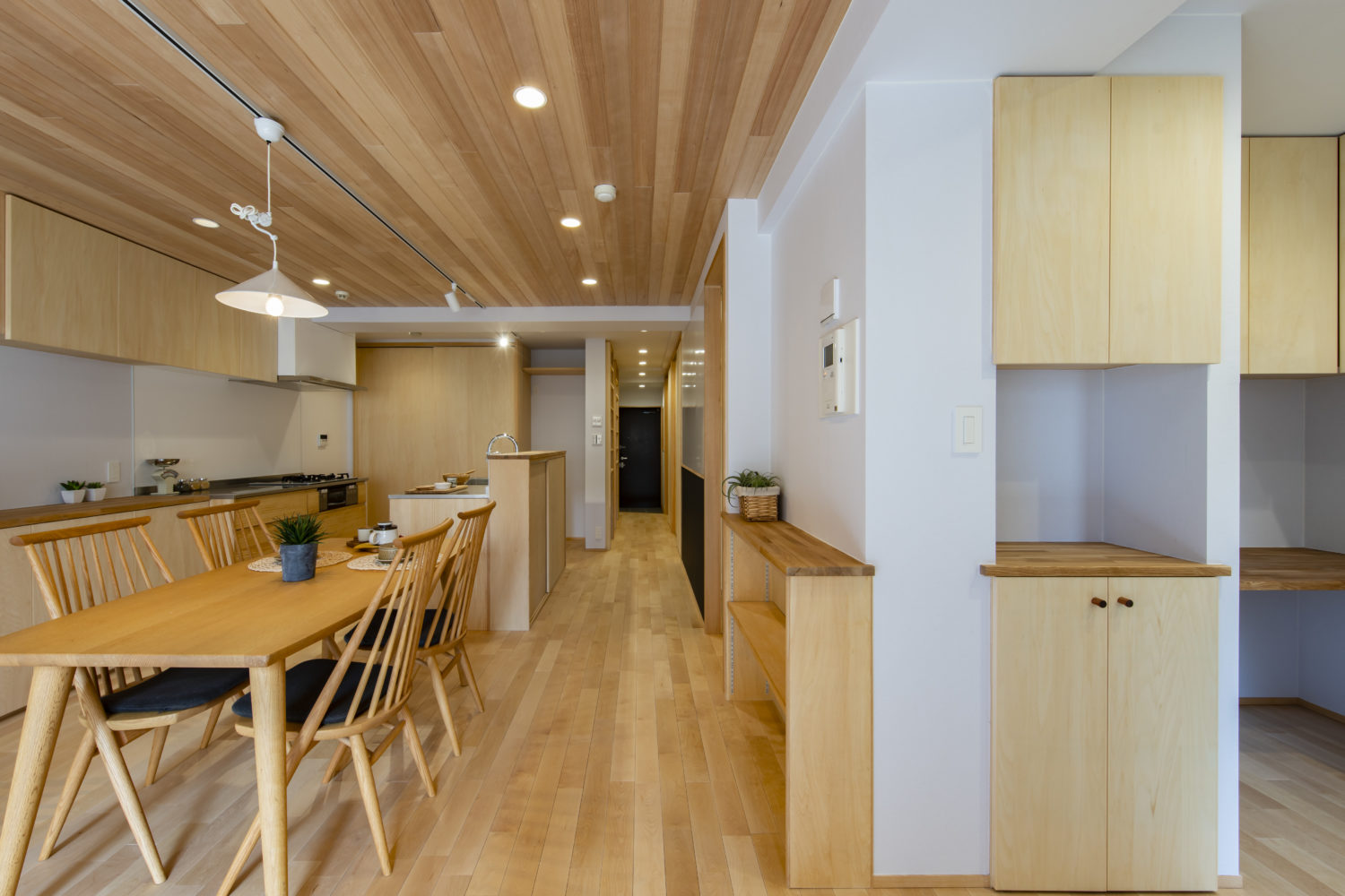 お子さまと楽しく暮らすことを第一に考えた住まい手様。自由で豊かな発想を活かす工夫が随所に施され、家族が多い中で収納を上手にコントロールできるよう設計されました。造作収納は設計と大工の技術から生まれ、自然とお手伝いや片づけをサポートする仕掛けが満載。一体感あるデザインは、居心地の良さと快適さをもたらします。