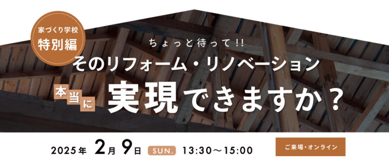 この勉強会では、ご自宅のリフォームやリノベーションをご検討中の方に役立つ情報をお伝えします。